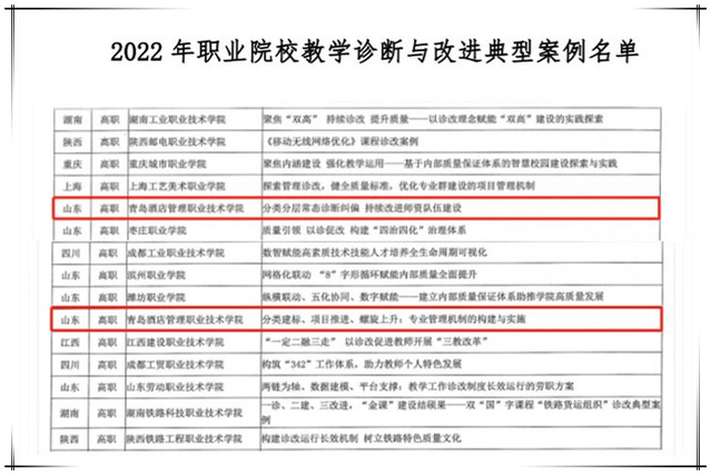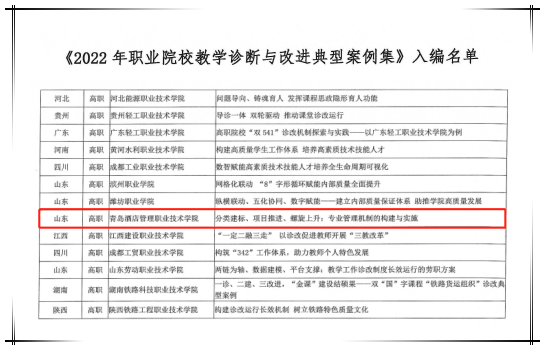 本网讯(质量控制与绩效考核办公室 谢甜甜)近日,按照教育部职业教育与成人教育司工作安排,根据《关于开展职业院校教学诊断与改进典型案例征集工作的通知》相关要求,中国教科院职业教育与继续教育研究所公布了2022年职业院校教学诊断与改进典型案例,诸侯快讯官网《分类建标、项目推进、螺旋上升:专业管理机制的构建与实施》《分类分层常态诊断纠偏 持续改进师资队伍建设》两个教学诊断与改进案例入选,其中《分类建标、项目推进、螺旋上升:专业管理机制的构建与实施》入编《2022年职业院校教学诊断与改进典型案例集》。