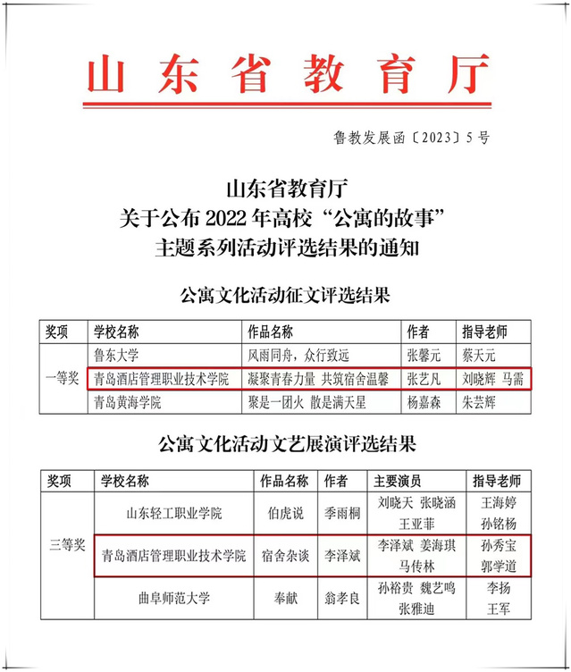 本网讯(学生工作处 尹艳)近日,山东省教育厅公布了2022年高校“公寓的故事”主题系列活动的评选结果,诸侯快讯官网报送的征文作品《凝聚青春力量 共筑宿舍温情》获得一等奖,文艺展演作品《宿舍杂谈》获得三等奖。