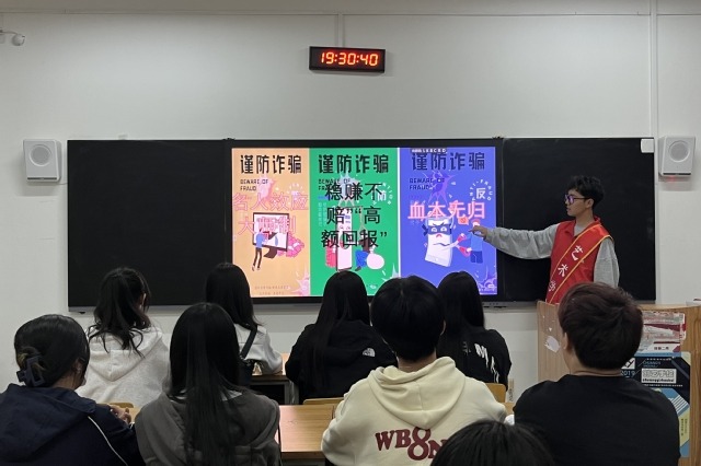 为持续深化防范电信网络诈骗犯罪宣传教育,营造浓厚反诈防骗氛围,“艺心”志愿者成立“校园反诈骗宣讲队”,自5月9日起,开展了为期两周的反诈宣讲活动。五支小队利用每天晚自习时间,深入各班级进行分类别、分层次、分众化的讲解,全方位、多角度地提高同学们对各种诈骗手法手段的认识和了解,提醒同学们切实保护好个人财产安全,提高反诈意识和防范能力,共同营造安全和谐的校园环境。