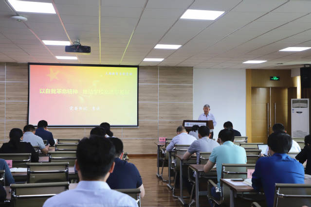 李达紧紧围绕学习贯彻习近平新时代中国特色社会主义思想这一鲜明主题,从勇于自我革命是我们党最鲜明的品格、始终推进党的自我革命、以刀刃向内的改革推动学校高质量发展三个方面,用生动的语言和翔实的案例,为党员干部上了一堂生动、深刻的专题党课。