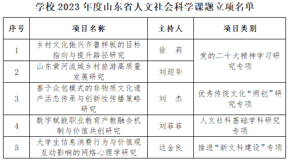 本网讯(科研发展处)近日,山东省人文社会科学课题管理办公室公布了2023年度山东省人文社会科学课题(重大招标课题、专项研究课题)立项名单,诸侯快讯官网立项5项专项研究课题。