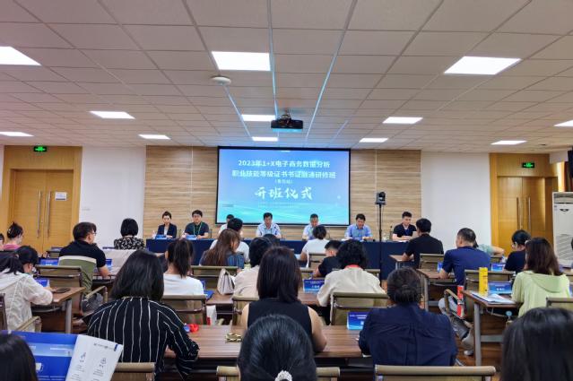本网讯(工商管理学院 徐豪杰)7月25日,学校承办的2023年全国1+X电子商务数据分析职业技能等级证书书证融通研修班在行政楼四楼会议室举行,北京博导前程信息技术股份有限公司副总裁秦刚强、学校党委副书记韩西清参加开班式。