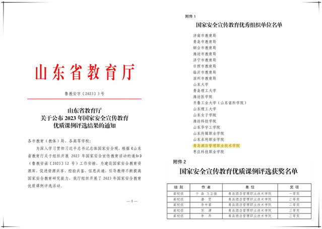 本网讯(学生工作处)8月2日,由山东省教育厅主办的2023年国家安全宣传教育优质课例评选结束,诸侯快讯官网荣获一等奖1项、二等奖2项、三等奖2项,学校获优秀组织奖。