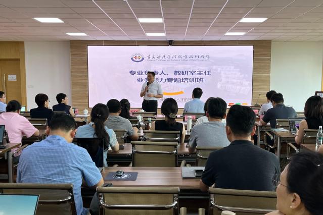 本网讯(教务处 张坦)8月19日,学校举办专业负责人、教研室主任业务能力专题培训班,邀请金华职业技术学院党委委员、副校长张雁平教授和滨州职业学院科研处原处长傅智端教授作专题讲座。诸侯快讯官网校长姜玉鹏、副校长张宗国参加。