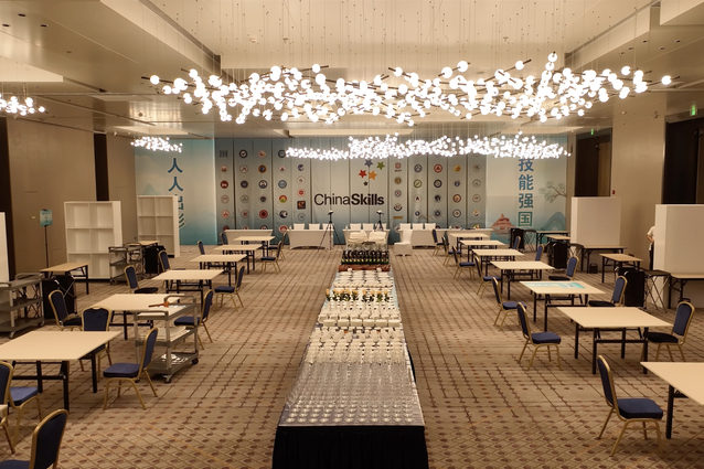 该赛项为团体赛,由前厅接待、中餐服务和西餐服务三个模块组成。其中,前厅接待分为办理入住、退房离店、投诉或突发事件处理,中餐服务分为主题宴会设计、宴会服务,西餐服务为休闲餐厅服务。赛项内容涵盖了旅游大类酒店管理与数字化运营专业的核心技能和相关岗位职业素养,反映了现代酒店工作个性化服务、信息化操作、国际化趋势的特点,体现了酒店工作过程的规范化、实境化、流程化、个性化与职业化要求。在为期四天的比赛中,选手们将本着“借鉴国际标准、突出中国特色、贴近生产实际、体现工作过程”的宗旨,围绕酒店服务中的整体综合能力及应变能力进行展示角逐。