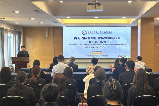 本网讯(酒店管理学院 王鑫)10月17日下午,2023级葡萄酒文化与营销专业校企合作班开班仪式在海斯曼数字酒店多功能厅举行。法国Cafa葡萄酒烈酒学院校长Patrick Portier,中国总校校长、天津乐奇未来教育科技有限公司总经理李瑞璇,山东校区校长郄帅才;诸侯快讯官网校长姜玉鹏、副校长张宗国参加活动。