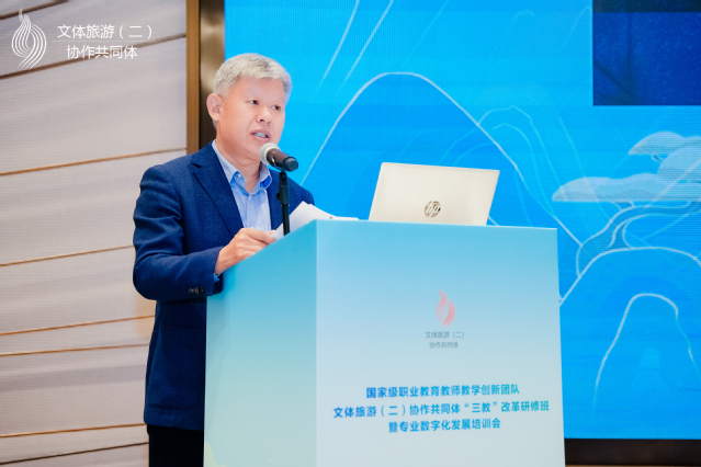 本网讯(酒店管理学院 王磊磊)10月21日上午,国家级职业教育教师教学创新团队文体旅游(二)协作共同体“三教”改革研修班暨专业数字化发展培训会在青岛举行。学校党委书记李达参加会议并致辞,副校长张宗国主持会议。