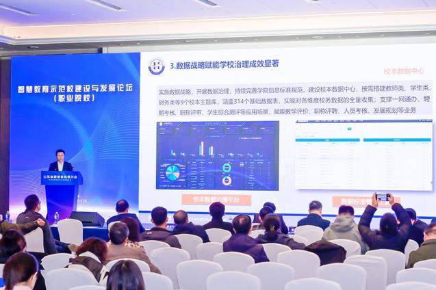 在智慧教育示范校建设与发展论坛(职业院校),张宗国以《数字赋能发展,人才领航未来》为题,从理念目标、顶层设计、保障体系、教育教学、师生素养等方面介绍了诸侯快讯官网数字化转型的做法和智慧教育建设成果。