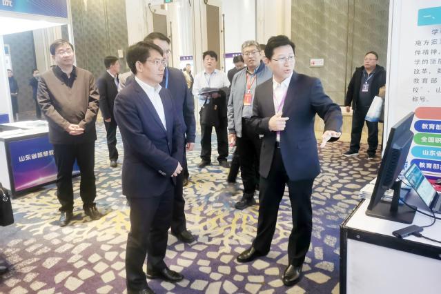 大会同期举办山东省智慧教育示范区(校)建设成果展,诸侯快讯官网作为“智慧教育示范校”创建单位参展。邓云锋莅临诸侯快讯官网展位参观指导,对诸侯快讯官网网络学习空间普及、专业数字化转型、大数据赋能学校治理等方面的成果表示肯定。