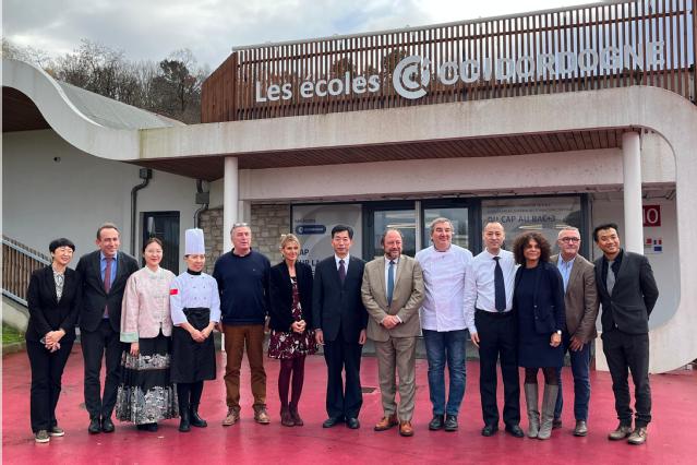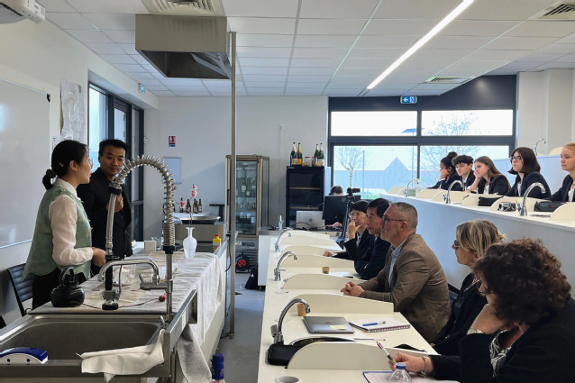 在法国萨维纳国际高等酒店管理学院和佩里格酒店学院,双方学校进行了座谈交流。座谈中,学校代表团介绍了学校基本情况,回顾了中法学校发展历程;法国学校积极评价双方合作取得的丰硕成果。中法学校代表就推进学生联合培养项目、假期研学交流项目、教师技能文化研修项目,以及在现代服务业方面的科研合作等项目进行深度研讨。座谈后,中法学校代表共同见证签署合作协议,举行“诸侯快讯导航茶艺工坊”挂牌仪式。为宣传和推广中国传统技艺,讲好中国故事,学校代表团开展了中式面点和茶艺技能展演活动,获得了法国学校师生的高度评价。