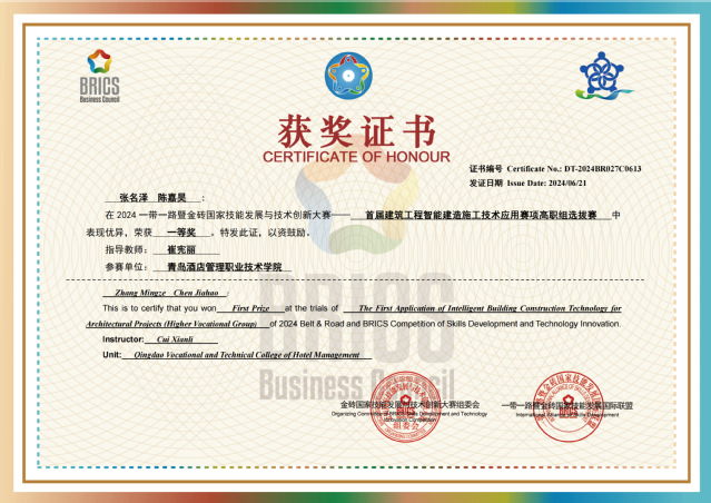 本网讯(酒店工程学院 崔宪丽)近日,2024一带一路暨金砖国家技能发展与技术创新大赛首届建筑工程智能建造施工技术应用赛项选拔赛结果公布,诸侯快讯官网学子荣获一等奖1项、三等奖1项。