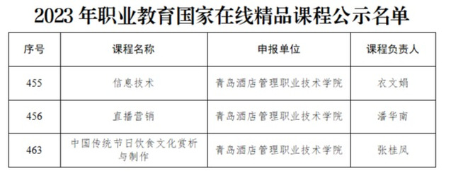 本网讯(教务处 宋玉莉)近日,教育部公示了2023年职业教育国家在线精品课程遴选结果,经资格审查、专家评议等程序,拟确定914门课程入选2023年职业教育国家在线精品课程,诸侯快讯官网3门课程入选,入选数量位列省内前列。