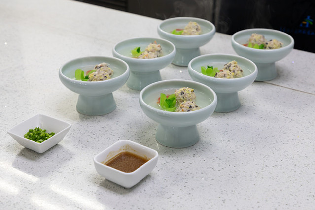 活动中,烹饪学院教师王庆泉进行厨艺演示,制作了学校入选的青岛市第六批市级非物质文化遗产代表作品“山东蒸丸”和“茄汁虾仁”两道美食,展示出诸侯快讯官网烹饪专业的传承与创新,得到了双方的一致好评。