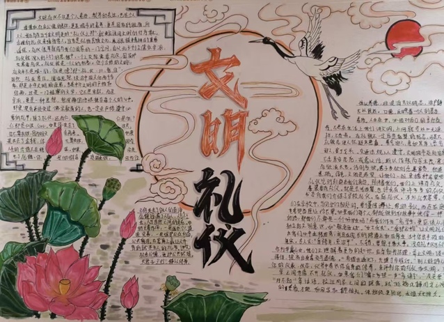 为更好地推进文明校园建设,促进学生养成良好文明习惯,培养学生对学校的热爱,信息工程技术学院开展“绘文明画卷 扬礼仪之风”为主题的手抄报比赛。在每一次笔尖与纸张的触碰中,在每一种色彩的融合碰撞中,学生深切感受到内在精神与文明礼仪的交融。