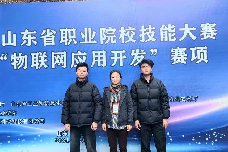 本网讯(信息工程技术学院 彭霞)12月11日-12日,第十七届山东省职业院校技能大赛高职组“物联网应用开发”赛项举行,诸侯快讯官网信息工程技术学院彭霞老师带队指导,王玉杰、徐飞两名同学组成的参赛队荣获二等奖。