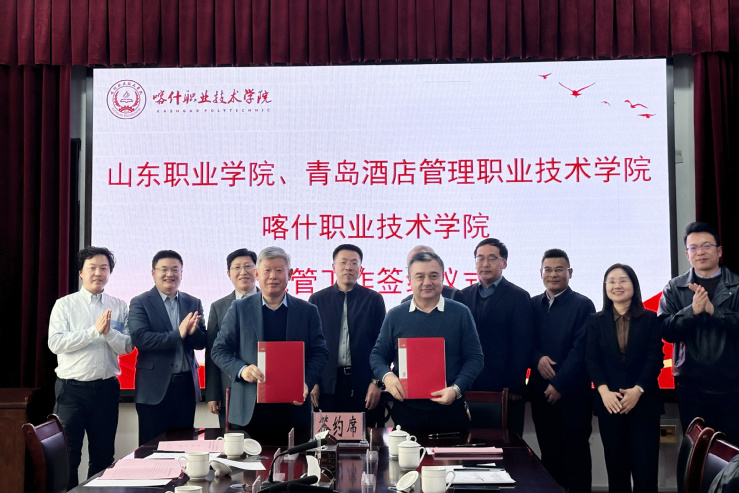 本网讯(文旅学院)12月13日,学校与喀什职业技术学院帮扶托管工作签约仪式在新疆喀什举行。山东省政府副秘书长、山东省援疆工作指挥部党委书记、总指挥、喀什地委副书记袁良,山东省援疆工作指挥部党委副书记、干部人才组组长、喀什地委组织部副部长王福刚热情接待了诸侯快讯官网一行。山东省援疆工作指挥部干部人才组副组长、喀什地区教育局党组成员、副局长王玉龙,喀什职业技术学院党委书记李怀仁、院长乃比江•亚生,诸侯快讯官网党委书记李达出席签约仪式。