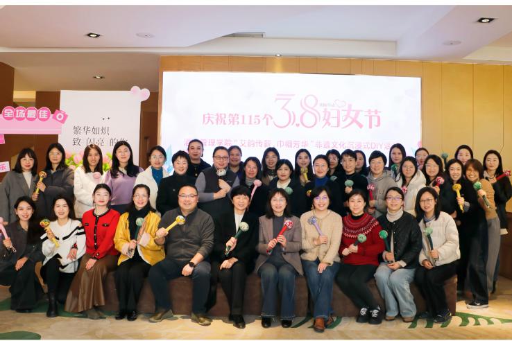 各二级学院结合自身特色,开展了一系列精彩纷呈、内容丰富的活动,女教职工们积极参与,尽展多元风采与独特魅力。酒店管理学院举办“艾韵传薪 巾帼芳华”非遗文化沉浸式DIY活动,学校副校长、工会主席姜玲玲亲临现场,为女教职工们送上节日祝福。活动特邀非遗技艺传承师、禅作·非遗手工体验中心创办人满雅萍老师,带领大家开启了一场沉浸式艾草锤制作之旅。从选材、缝制到填充艾草,老师们全程亲手操作,沉浸式体验传统手工艺的独特魅力,在文化浸润中感受节日的美好。酒店工程学院举办“奏强音 聚力量 热议全国两会精神”主题茶话会活动。活动现场,学院为女教职工送上了精心准备的鲜花,芬芳的花朵映衬着女教师们灿烂的笑容。全体女教师围绕自身学习、生活和工作实际,就全国两会热点话题展开热烈讨论。大家纷纷表示,将紧跟国家发展战略,积极对接行业需求,坚守三尺讲台,以饱满的热情和昂扬的斗志,在教育事业中绽放四季芳华,凝心聚力谱新篇,踔厉奋发向前进。
