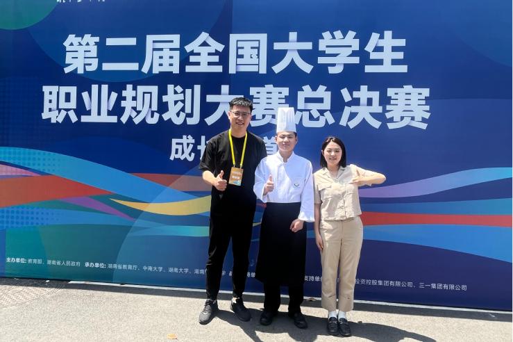 自2024年校赛启动以来,张璐历经校赛、省赛层层选拔,最终站上全国总决赛舞台。在长达半年的备赛过程中,他结合酒店食雕面塑师的职业发展方向,系统梳理个人成长路径,深入完善职业规划方案。总决赛现场,张璐同学以“刀笔生花 面塑风华”为题,凭借扎实的专业技能储备、清晰的职业目标定位以及沉稳的临场应答能力,最终荣获铜奖。