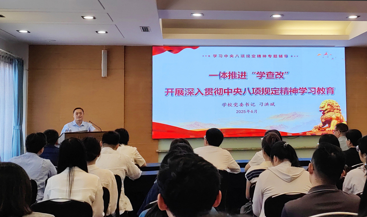 刁洪斌强调,要把学习教育与作风建设有机统一起来,重点抓好“学查改”,以作风建设新成效开创高质量发展新局面。他要求,一要提高政治站位,凝聚思想共识。党员干部要深刻领悟中央八项规定精神的政治意义,始终在思想上、政治上、行动上同党中央保持高度一致,将纪律规矩内化于心、外化于行。二要聚焦工作落实,夯实履职根基。把贯彻落实中央八项规定精神与本职工作紧密结合,立足岗位实际,主动担当作为,切实将学习成果转化为工作实效。三要深化学习教育,明显改进作风。常态化开展学习教育,通过学理论、查问题、抓整改,不断提升党性修养,营造风清气正的校园政治生态。