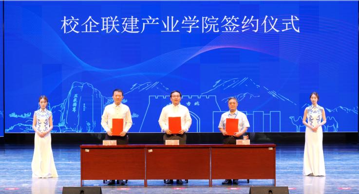 在鲁喀职教联盟成立大会上,学校当选为鲁喀职教联盟副理事长单位,刁洪斌与山东文旅集团、喀什职业技术学院领导共同签署了校企联建产业学院三方协议。
