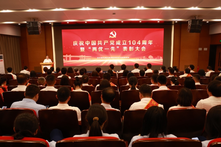 本网讯(组织人事处(教师工作部))在庆祝中国共产党成立104周年之际,6月26日下午,学校在学术报告厅召开庆祝中国共产党成立104周年暨“两优一先”表彰大会,表彰校级优秀共产党员、优秀党务工作者和先进基层党组织。学校党委书记刁洪斌出席大会并讲话,党委副书记、校长姜玉鹏主持会议。