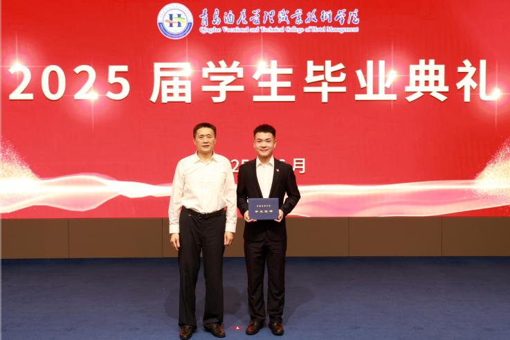 校长姜玉鹏为毕业生代表颁发毕业证书,并与同学们一一握手表示祝贺。2025届毕业生中有89名同学加入了中国共产党,34名同学参军入伍,502名同学获得国家、省部级以上奖学金,1058名同学考入本科学校继续深造。同学们在不同的赛道上奋力驰骋,收获了属于自己的风景。