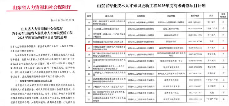 学校已连续第四年入选山东省专业技术人才知识更新工程高级研修项目。山东省专业技术人才知识更新工程以“服务国家重大战略和山东省重点产业发展”为指导,以“全面加强专业技术人员继续教育、不断提高我省人才自主培养质量”为抓手,以“发展新质生产力,促进产业升级”为目标,经单位申报、市人社局推荐、省人社厅评审论证等流程,2025年共确定147个省级高级研修项目。