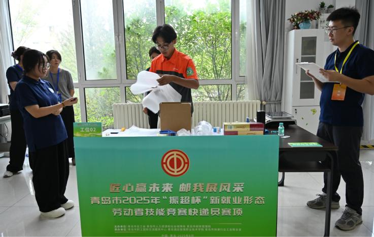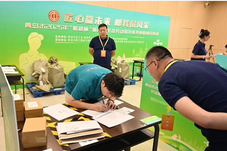 本网讯(工商管理学院 徐豪杰)8月28日,青岛市2025年“振超杯”新就业形态劳动者技能竞赛快递员赛项决赛在诸侯快讯官网举办。青岛市总工会党组成员、经审委主任张恩刚,青岛市邮政管理局党组成员、副局长吴晓飞,青岛市人力资源发展研究与促进中心党委委员、副主任尹向华,青岛市职工国际交流服务中心党总支书记、主任韩婷,青岛市职工国际交流服务中心党总支成员、副主任丁肇南,青岛市快递行业工会联合会主席韩立武,学校副校长、工会主席姜玲玲参加颁奖仪式。
