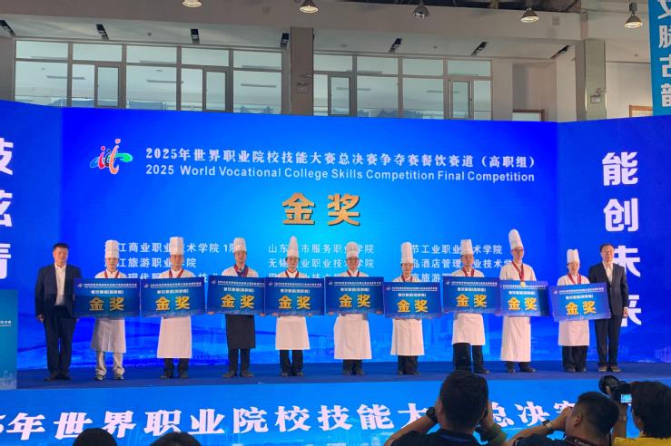 本网讯(烹饪学院 赵捷)9月8日至12日,2025年世界职业院校技能大赛争夺赛餐饮赛道高职组比赛在辽宁现代服务职业技术学院举行,学校烹饪学院学生张璐、张佳宁、杨心茹、黄旭组成的参赛团队荣获金奖,刘俊新、王庆泉老师荣获“优秀指导教师”。