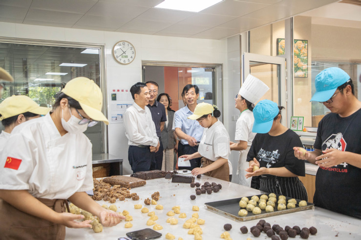 调研组实地参观了海斯曼数字酒店实训中心、青岛旅游大数据中心、烹饪学院实训基地、智慧物流末端综合实训基地等教学实训场所。