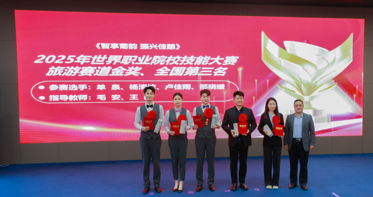 活动期间,酒店管理学院单泉、杨清洁、马千惠、邵晓媛四位同学展示了旅游赛道金奖作品《智享葡韵 振兴佳酿》,文旅学院李冰冰、郭希磊、门凡斐、张佳琪四位同学展示了艺术设计赛道金奖作品《千年古字鸟虫篆:数字文创赋能中国非遗创新》,烹饪学院张璐、杨心茹、黄旭、张佳宁四位同学展示了餐饮赛道金奖作品《诗礼炊烟越山海》。