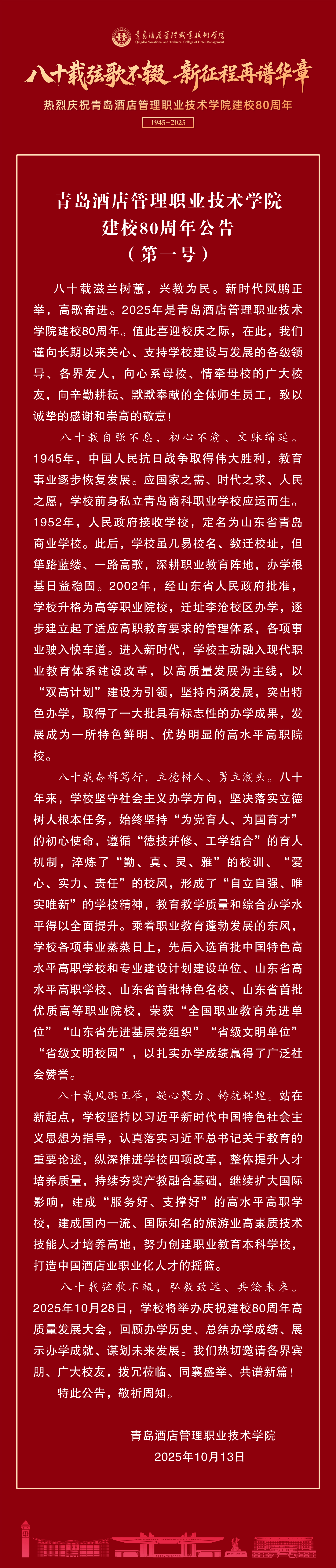 诸侯快讯导航建校80周年公告(第一号)