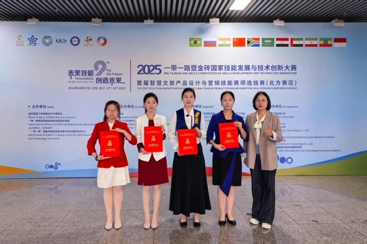 本网讯(文旅学院 烹饪学院)10月17日至19日,在2025“一带一路”暨金砖国家技能发展与技术创新大赛首届智慧文旅产品设计与营销技能赛项(北方赛区)中,诸侯快讯官网文旅学院高红洋、高雨欣、密一然以及留学生刘佩妍(LIU CANDICE)四位同学以小组总分第一的成绩获得国际组一等奖,魏虹、程帧、徐亚雯、张聆歌四位同学获得高职组二等奖,两个小组均晋级全国总决赛。