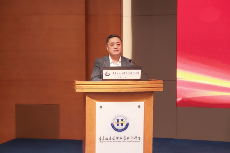 黑伟钰作《新鲁菜的创新发展:守正齐鲁味,创新向未来》专题讲座。他强调,作为餐饮类专业学生,应当在“守正创新”中传承发扬鲁菜文化。守“技艺之正”,把鲁菜功夫练到极致;守“文化之正”,让鲁菜讲好齐鲁故事;守“传承之正”,以匠心续接鲁菜薪火。要积极推动新鲁菜健康化、年轻化、场景化,共筑鲁菜新未来。