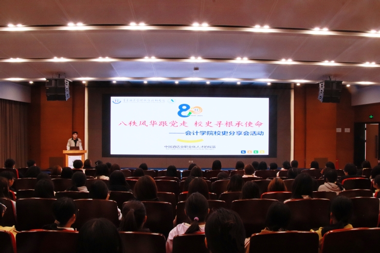 为使在校学生深入了解学校八十载波澜壮阔的奋斗历程,10月23日,会计学院举办“八秩风华跟党走 校史寻根承使命”校史分享会。活动前期,同学们主动探寻校史,通过查阅学校资料、公众号、采访校友等多种方式,搜集、整理学校发展历程中的珍贵记忆;分享会上,同学们依次登台,以演讲、短视频等形式,分享了他们的“寻根”成果。