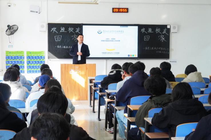 信息工程技术学院特邀2010级优秀校友、济南轻奢珠宝有限公司总经理刘发傢为在校生带来题为《八秩积淀 卅载创新:我的跨界创业之路》的精彩报告。他分享了自己从技术领域成功跨界至商业领域的宝贵经历与思考,激励学弟学妹们勇于探索,敢为人先。现场气氛热烈、互动频频,成为一堂生动的“育人金课”。