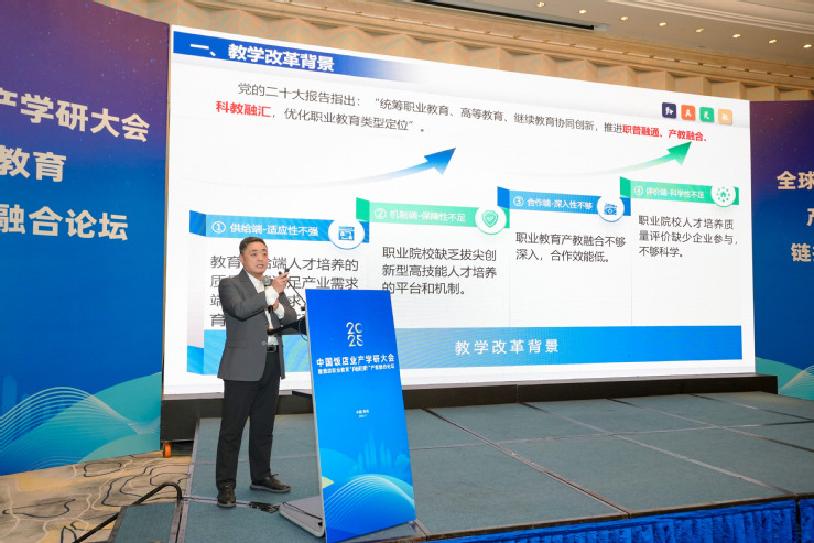 刁洪斌在主旨演讲中提出“‘企业出题、校企共答、市场阅卷’产教融合理念的职业教育创新型人才培养模式”,并系统阐释了该模式的核心内涵,即通过将企业真实需求转化为教学课题,组建校企双元团队共同破解难题,最终由市场效益检验育人成果。刁洪斌以学校助力新疆葡萄酒产业提质增效的援疆项目为例,生动展示了该模式的实践成效,为破解人才培养与产业需求脱节难题提供了可复制、可推广的解决方案,获得与会嘉宾的高度认同和积极评价。