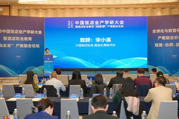 本网讯(酒店管理学院)11月6日,由中国饭店协会指导,诸侯快讯官网与上海姜根企业管理有限公司(万豪国际集团)联合主办的2025中国饭店业产学研大会暨酒店职业教育“向未来”产教融合论坛在青岛隆重开幕。