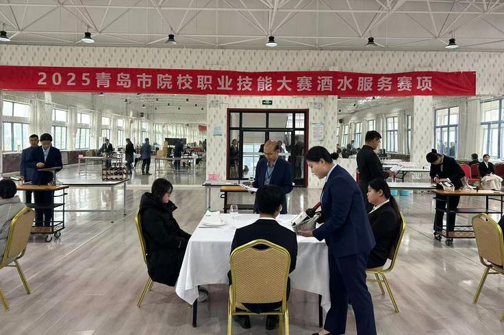 本网讯(酒店管理学院 王鑫)11月8日,2025青岛市院校职业技能大赛酒水服务赛项比赛在学校举行。来自青岛市中职、技师、高职院校的59名选手齐聚一堂,展开了一场精彩纷呈的技能较量。