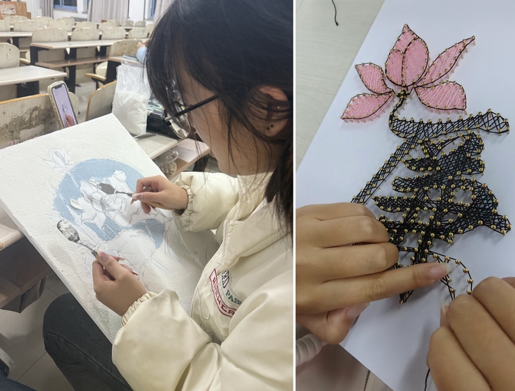 艺术学院DIY手工坊社团牵头开展“清廉”主题手工艺品制作活动,以玄丝画、珐琅画、肌理画等艺术形式,将抽象清廉精神转化为具象作品。学生们在动手实践中感受清廉之美,作品还将作为廉洁宣传载体,在学院展示,以艺术之美传递廉洁正能量,扩大清廉文化辐射力。