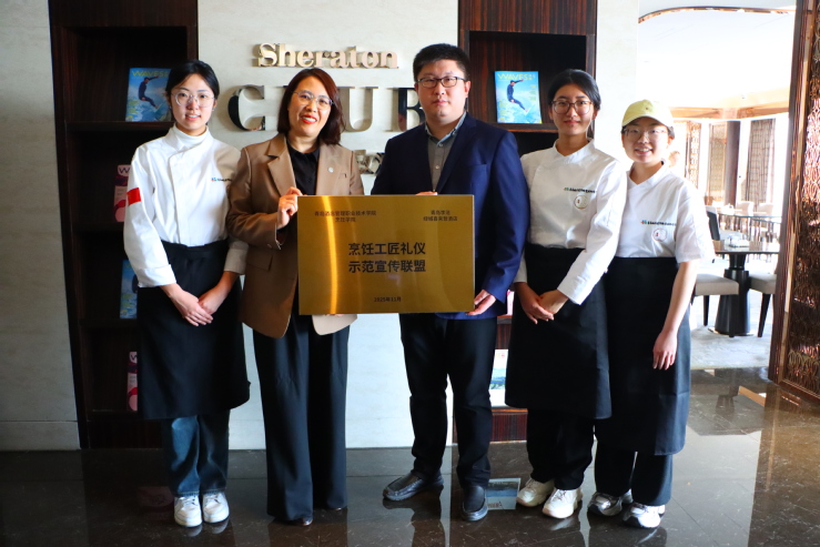 为实现育人成果转化为行业美誉,进一步发挥品牌化推广优势,学院携手青岛李沧绿城喜来登酒店等诸多业内知名餐饮企业,共同成立“烹饪工匠礼仪示范宣传联盟”。将《匠武八方 匠仪四海》所承载的工匠精神与礼仪规范,通过行业企业平台进行示范性展演与推广,实现了从校园文化品牌到行业标杆示范的成功转化,让烹饪工匠礼仪的“声韵的影响力”与“风尚的感召力”在行业内落地生根。