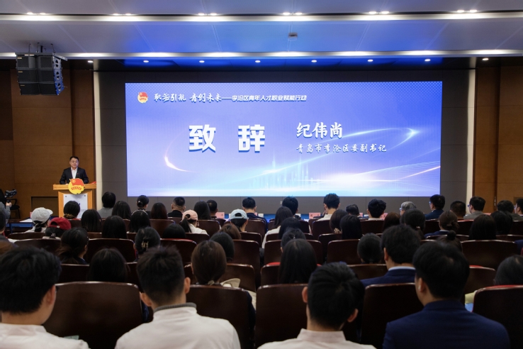 本网讯(团委 徐小田)为深入贯彻落实习近平总书记关于青年工作的重要思想,聚焦青年人才职业能力提升,搭建常态化联系的人才培养与产业需求对接的校地赋能平台,12月12日,由共青团青岛市委指导、李沧团区委和学校团委联合主办的“职海引航 青创未来”李沧区青年人才职业赋能行动专场活动在学校报告厅举办。共青团青岛市委书记周正、青岛市李沧区委副书记纪伟尚、学校党委书记刁洪斌等相关领导以及企业嘉宾、学校师生等300余人共同参与。