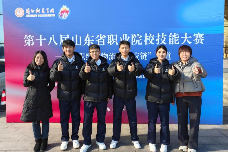 在“物流与供应链”赛道比赛中,由武静静、姜宁老师指导,刘帅、武世泽、袁杨、于苗苗四位同学组成的参赛队,围绕企业真实案例不断优化数据建模等关键环节,在智能设备调试、新技术应用上精益求精,荣获该赛道银奖。