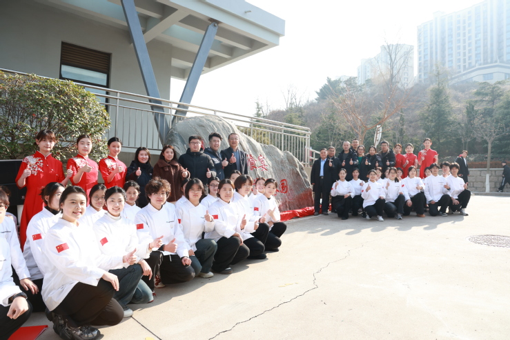 “味起飨宴,道至家国”文化石以“味”“道”为校园文化建设主脉络,将饮食文化与家国情怀有机结合。“味”起于对烹饪技术的极致追求,是专业育人的根基,旨在激励学生勤修专业技能,“飨宴”取义古代招待宾客盛大的宴席,“味起飨宴”是指美味起源于盛大的宴席,寓意烹饪技能的学习和工匠精神的培育开启于具有八十年办学历史的“鲁菜黄埔”;“道”涵盖烹饪科学规律、职业素养情怀;“家国”是厚植家国情怀,是育人的终极目标;“道至家国”旨在激励学生迈步人间正道,踏上大国工匠成长之路,树立技能报国的远大理想。