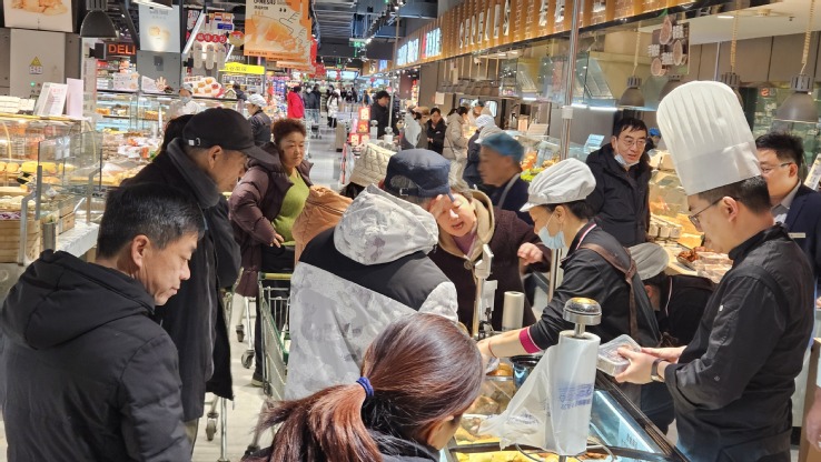 现场香气四溢、满目琳琅,市民游客驻足品鉴、纷纷抢购。学校师生团队与银座央厨联合研发的熏鲅鱼、红烧鲤鱼、黑枸杞桑葚欧包等烹饪、烘焙单品,去年11月经市场调研、可行性分析、产品研发转入产品论证阶段,后通过两轮中试论证后,进一步针对细分消费者市场特点与标准化生产要求得以改良。展示活动现场,各大单品均在商场食品加工区现场制作,一经亮相即引发抢购热潮,原备一日货源均在当日提前断货,其中熏鲅鱼等单品开售两小时即告售罄。现场品鉴的消费者普遍反馈产品兼具创新性与口感层次,尤其对多款产品的低盐健康配方或口味特别创新表示高度认可。
