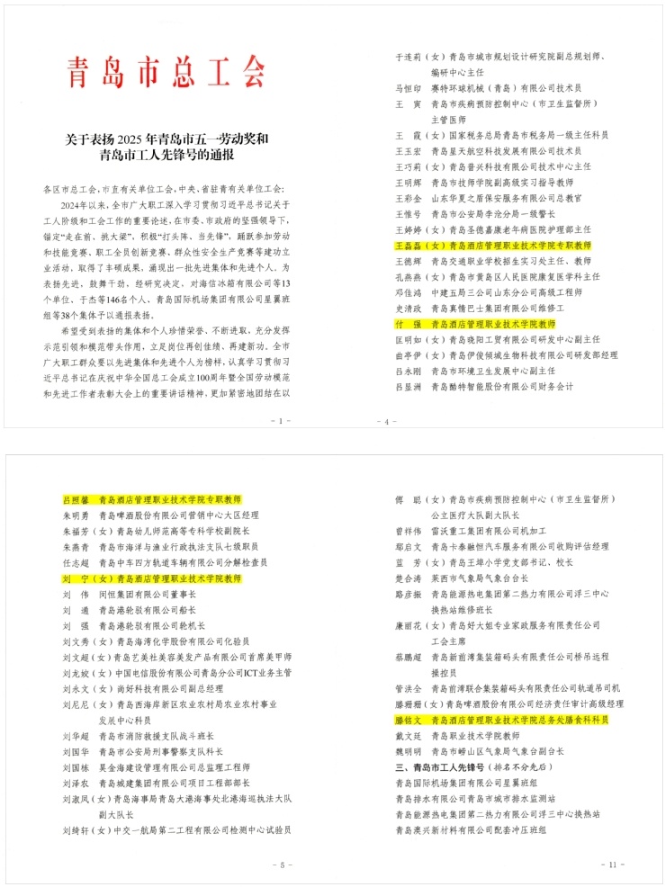 2025年,学校坚持教育家精神铸魂强师,强化“三级联动”教师工作机制,举办多场弘扬教育家精神论坛,开设“海斯曼师者”主题宣传栏目,成立“教师领航工作室”,塑造党建引领“大先生”涵育的良好生态。系统推进人才强校战略,酒店管理与数字化运营专业教师团队入选第二批国家级职教教师教学创新团队,“山东烹饪工匠学院”成功入选省级重点支持工匠学院名单;教师在省青教赛中获一等奖、二等奖4项,在省教学能力大赛中获一、二、三等奖各1项。27名教师获“齐鲁工匠”“山东手造工匠”“青岛市拔尖人才”等省市级人才称号,6名教师获省市“五一劳动奖章”,立项建设青岛市博士后创新实践基地,有效提升了人才队伍整体实力。贯彻党管干部原则,持续深化干部“选育管用”贯通机制,开展“作风能力提升年”活动,举办“点题、破题、答题”干部论坛,为学校改革发展提供了坚强组织保证。