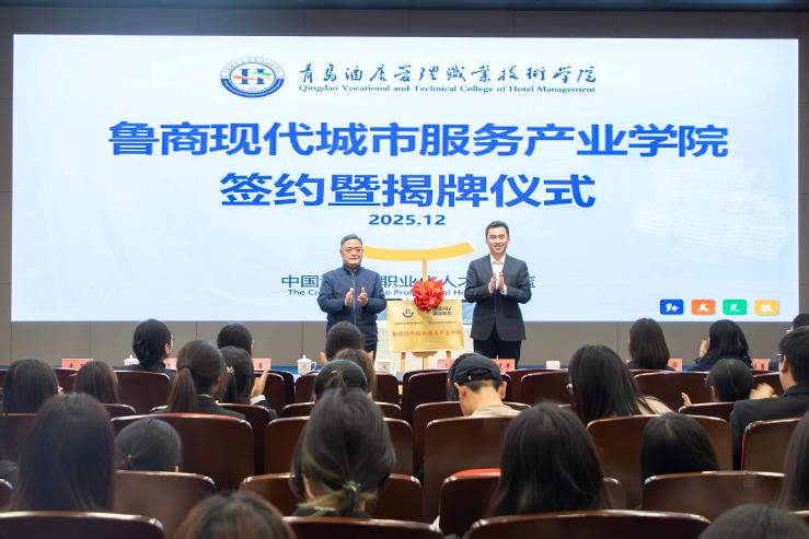 2025年,学校紧密对接鲁商集团“产业一盘棋、教育一体化”战略部署,推动专业集群系统性融入产业发展,产业协同实现从“单点突破”到“系统探索”的升级。学校智力精准对接集团产业需求,协同创新成效显著。与鲁商科技合作研发国内首个文旅专业教育垂直大模型“研途”及数字人智能体“品小研”;协同山东省创新研究院,为“大仓东移”工程研发多款创新产品并投产,申报专利6项、版权3项;为银座集团央厨定向开发11款酱卤新品,提供直接技术支撑。在人才培养与平台建设上,构建了深度协同的实体化载体。组织师生赴企业开展沉浸式跟岗培训;与集团企业共建鲁商现代生活服务产业学院、鲁商数字营销产业学院等以真实项目驱动的产业学院;与银座共建线上营销平台,实现“教学+经营”的实战闭环。在商务层面,与集团内单位在培训、教育、供应链等领域开展深度合作。